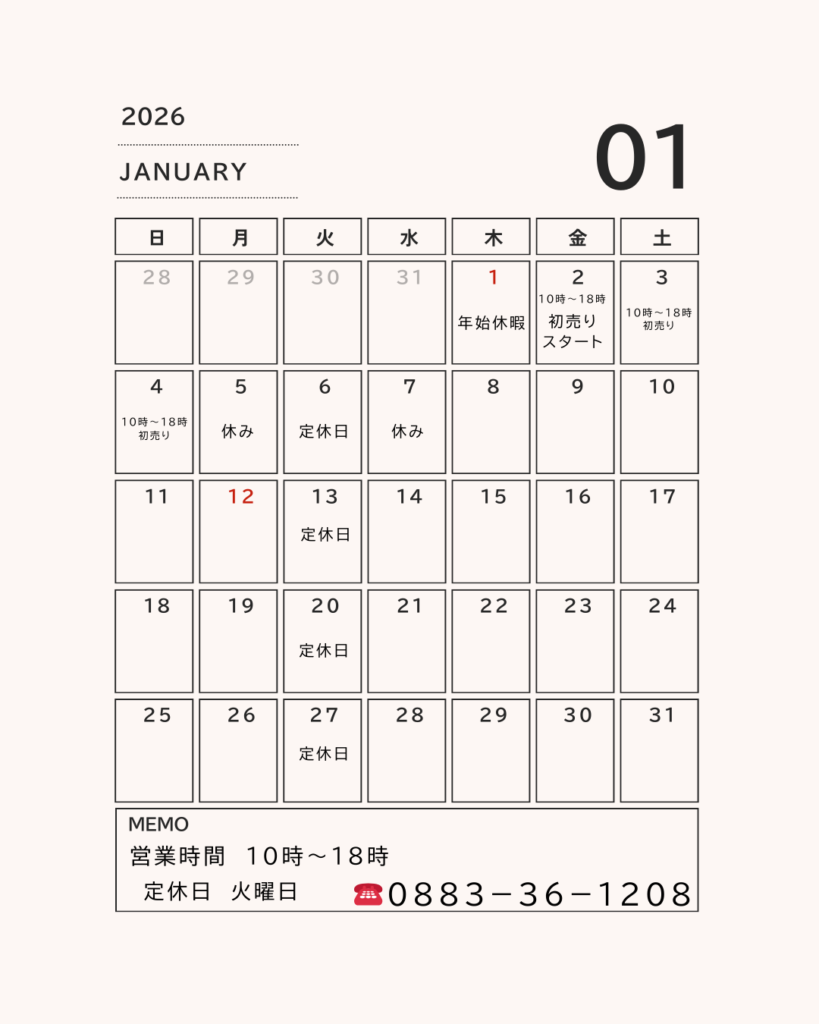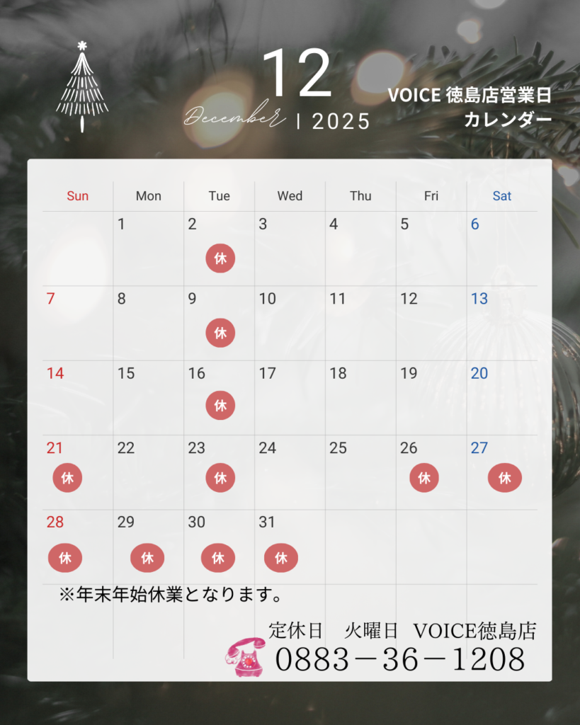 さて、年末年始休暇は下記のカレンダーの通りですが、多めにお休みをいただきます!